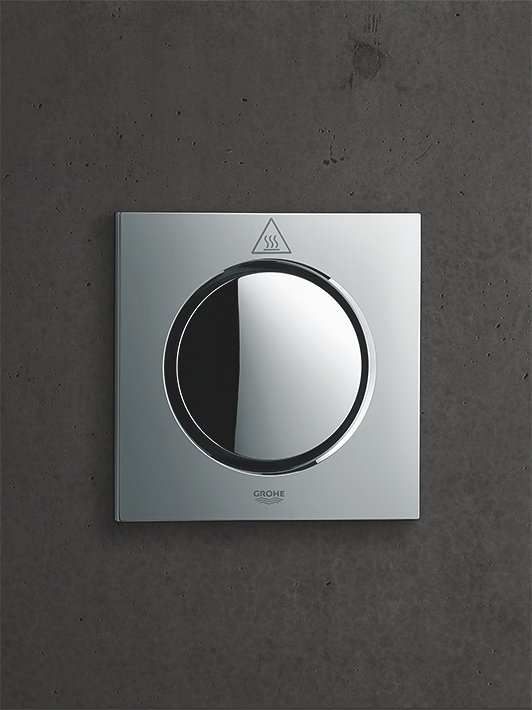 Create your own personal tailor-made spa experience with GROHE F-digital Deluxe. This cosmopolitan, multisensory shower will stimulate all your senses and transform your bathroom into an indulgent space for physical, emotional and spiritual well-being. The intuitive GROHE F-digital Deluxe App lets you design your own personal combination of lighting, sound and steam – by touch screen or wireless Bluetooth® connection – for a unique spa sanctuary in your own home.